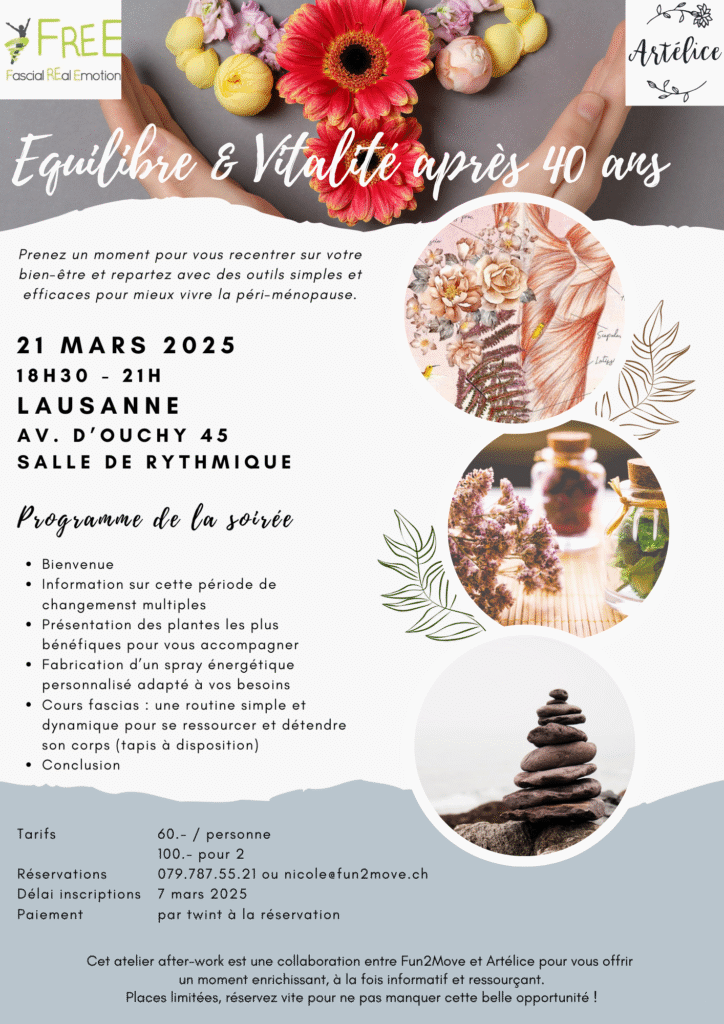Pendant toutes ces années, j’ai régulièrement suivi l’évolution dans le domaine du bien-être en participant à de nombreuses formations continues telles que Pilates, Fitball et bien d’autres. La découverte des fascias en 2018 m’a permis de revisiter mon approche avec un nouvel éclairage plus global et plus conscient. Mon expérience m’a prouvé que le travail des muscles profonds est essentiel. J’accorde une attention toute particulière à la posture et au ressenti personnel qui me tiennent particulièrement à cœur.